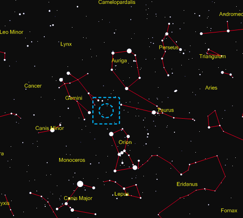 Many have heard of The Orion Nebula, located in the ‘sword’ of the asterism. NGC 2174 is located near Orion’s head, above Betelgeuse and covers an area larger than the full Moon. However, unlike The Orion Nebula, it cannot be viewed by the naked eye and requires binoculars at the very least to be seen.