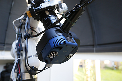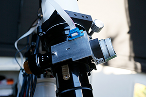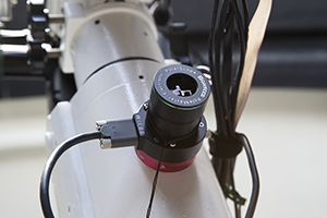 My eye on the sky is a Starlight Xpress Oculus all sky camera. This sits on another custom mounting (piece of wood stuck in the ground!) outside the RPO and looks up through its acrylic dome with a SuperStar sensor and 150° lens. I use the fantastic AllSkyEye software to operate the camera and can monitor exactly what sky conditions are like. It is also very useful to be able to check that the dome has indeed closed at the end of a session. (sxccd.com)