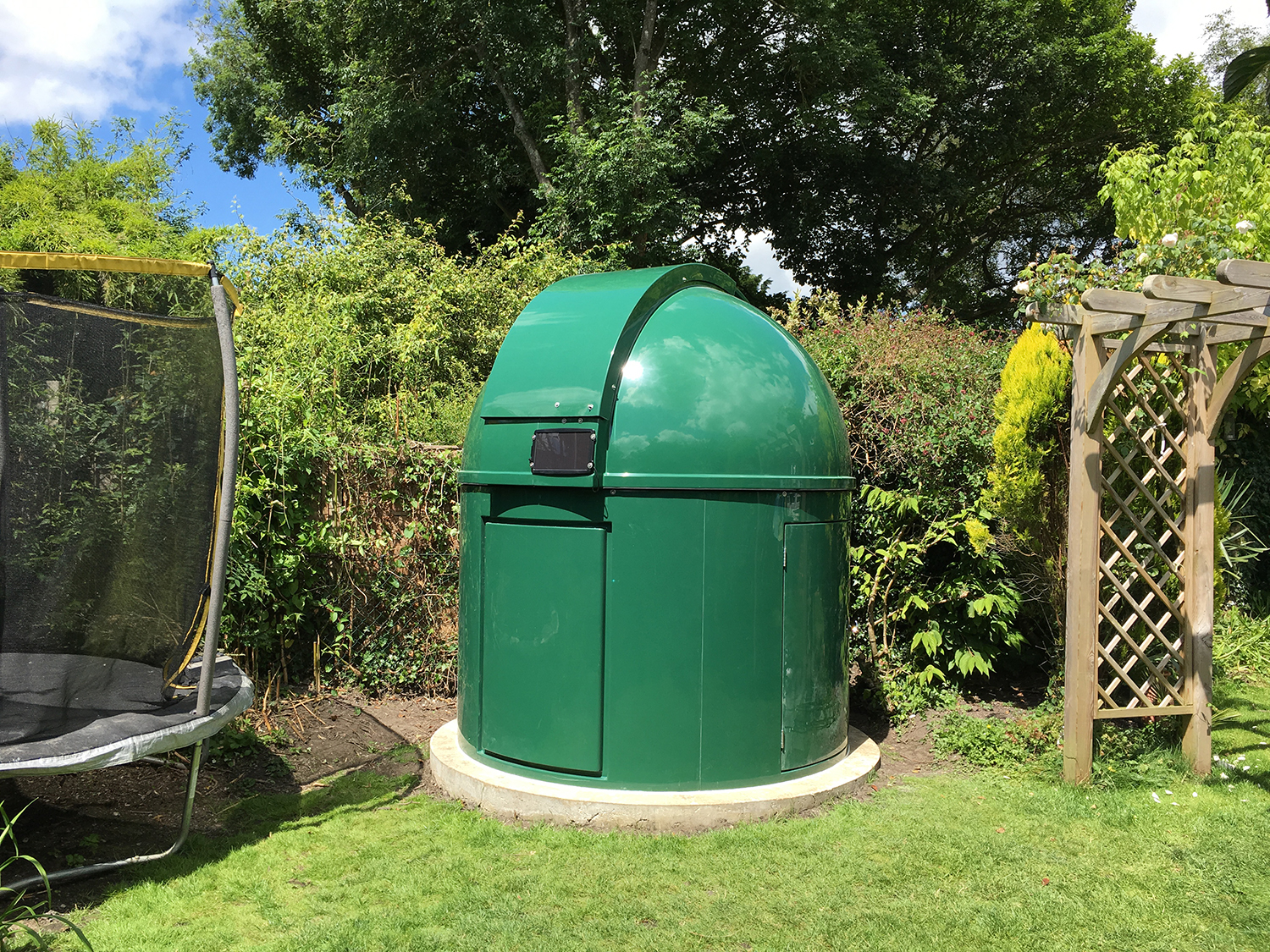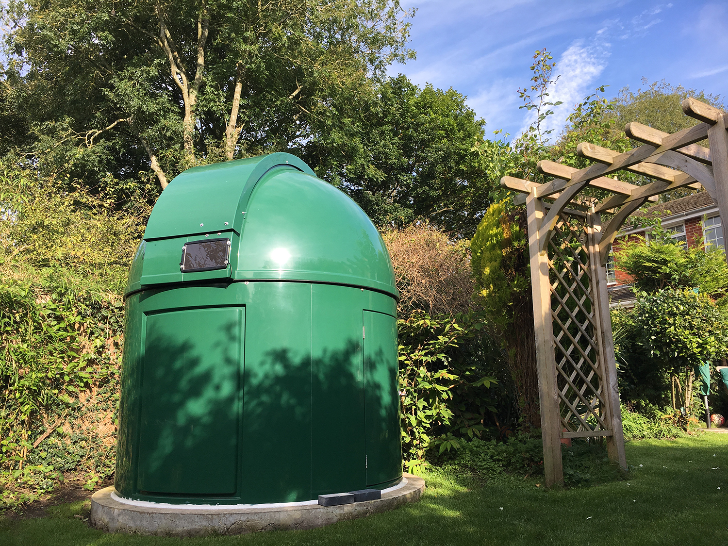 All my imaging is done from The River Park Observatory (or RPO for short), located in my back garden on the south western edge of the small market town of Marlborough in Wiltshire. I have been imaging from my garden since March 2013, but it was in July 2016 that a home for all my kit arrived in the form of a green Pulsar dome. Despite being called a recycling bin or a public lavatory, it has been perhaps the best upgrade I have made, allowing me to be up and running on the flick of a switch and shut down in a matter of seconds. The vagaries of the English climate mean that all too often an imaging session is cut short by the arrival of cloud. The observatory makes this easy to deal with, though not necessarily any less frustrating! This page details all the kit that I run in the RPO to achieve the imaging results that I am happy to have managed so far.