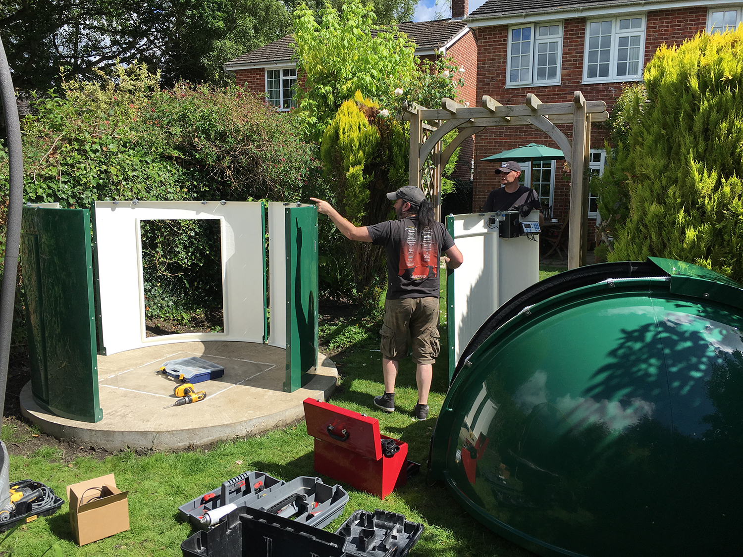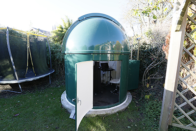 The first task was to choose a suitable south facing location, which involved a little gardening to make space. Next a metre cube concrete pier base was sunk along with an isolated 25cm round pad. The dome has a rotation drive and a shutter drive, linked in to the main computer. There is ample storage space for all the astro bits and bobs. I would hate to be without my dome now, it really does make the tricky pursuit of astrophotography just a little bit easier, or should that be 'less difficult'?! (pulsarastro.com)