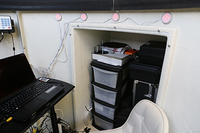 Located on a custom built pole outside the RPO is an essential piece of safety equipment, an AAG Cloud Watcher from Lunatico Astronomia. This device has three sensors on it; a brightness sensor, a moisture sensor and an infrared sensor. It is plugged into the observatory PC and monitors the environment outside. I have it set so that if it senses cloud or rain, the system will shut the observatory, keeping all that kit safe and dry - phew! (lunatico.es)