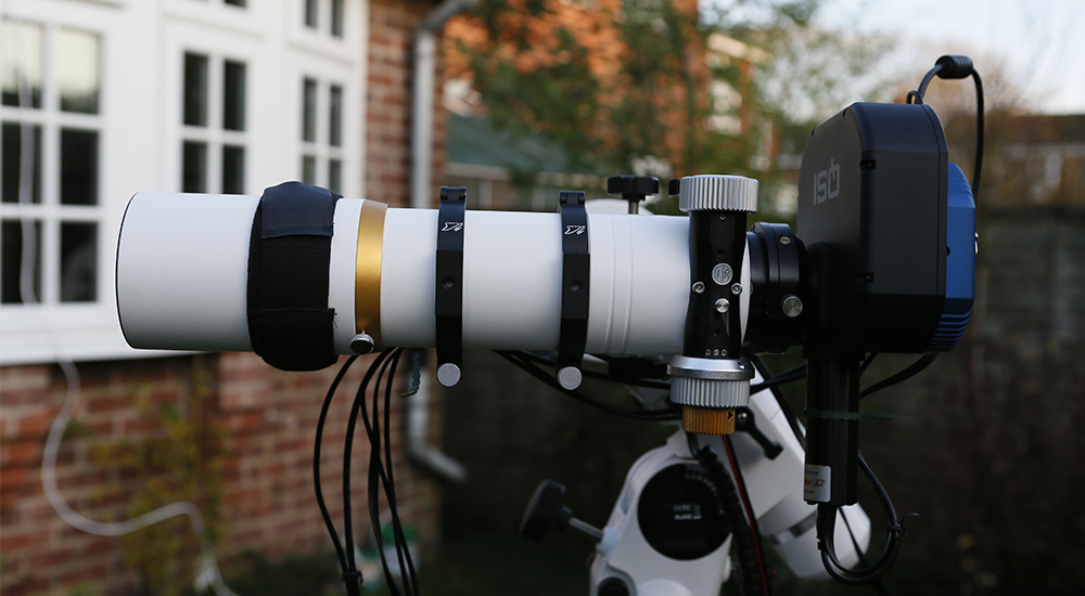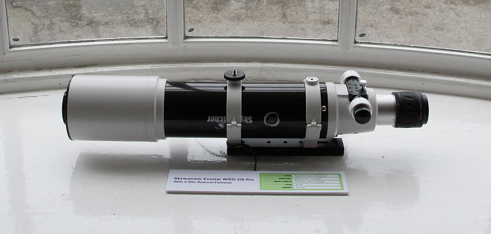 This is my 'widefield' scope with a focal length of 348mm. It has an aperture of 71mm (3 inches). It is reasonably fast at f4.9. I use this scope when I need to capture large areas of the sky. (williamoptics.com)