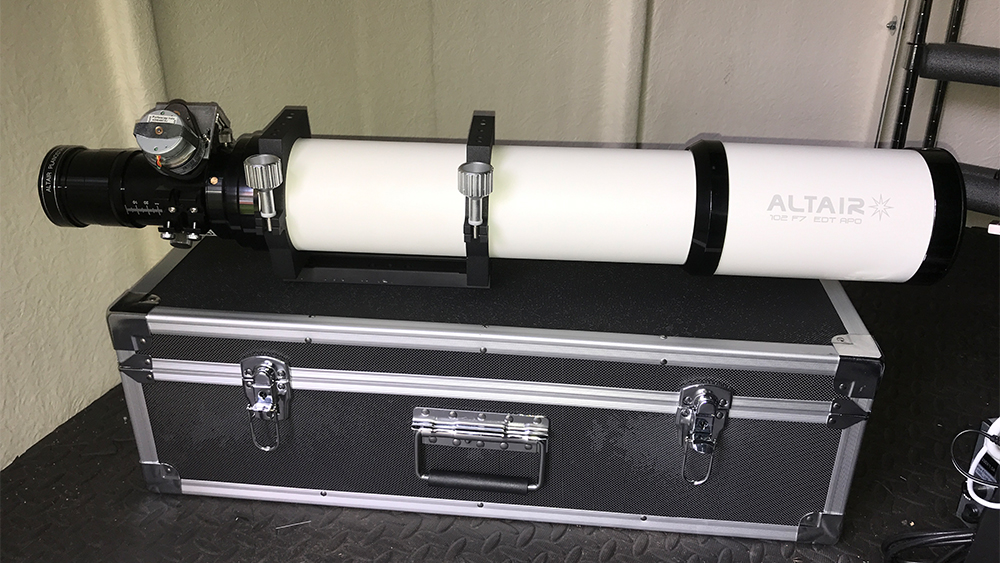 This is the scope that I purchased following the sale of the Skywatcher 80ED (above). It has a focal length of 710mm, aperture of 102mm (4 inches) and focal ratio of f7. I used it with a 0.79x reducer to give a focal length of 565mm at f5.5. Unfortunately I didn't keep this telescope for very long as I found that it didn't handle bright stars efficiently at all. I am still searching for its successor. (altairastro.com)