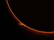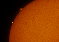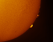 I purchased a small Lunt hydrogen alpha solar telescope in the summer of 2017 and have been amazed by the detail it gathers. The best method of imaging the Sun is with a high frame rate camera and I am slowly getting to grips with the technique since I acquired a Point Grey camera in October 2017, the quality of which is astounding. The great thing about solar imaging is that the Sun is always out - astronomy in the warm does have a certain appeal!