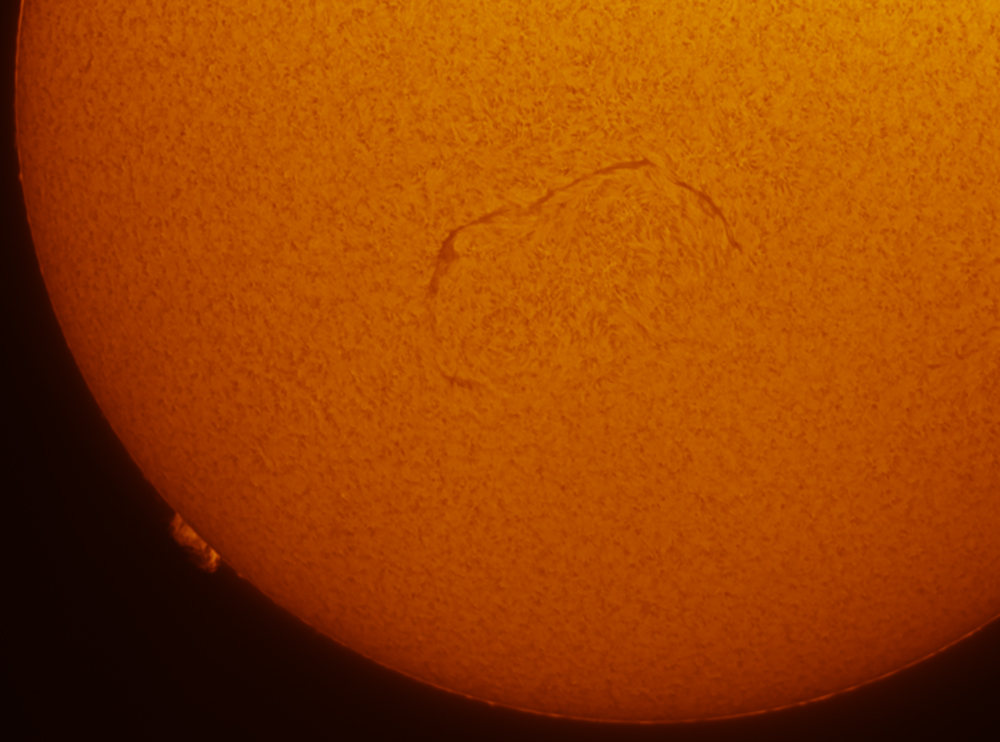 Close up view of the large filament and the prominence complex on the on coming lower limb.