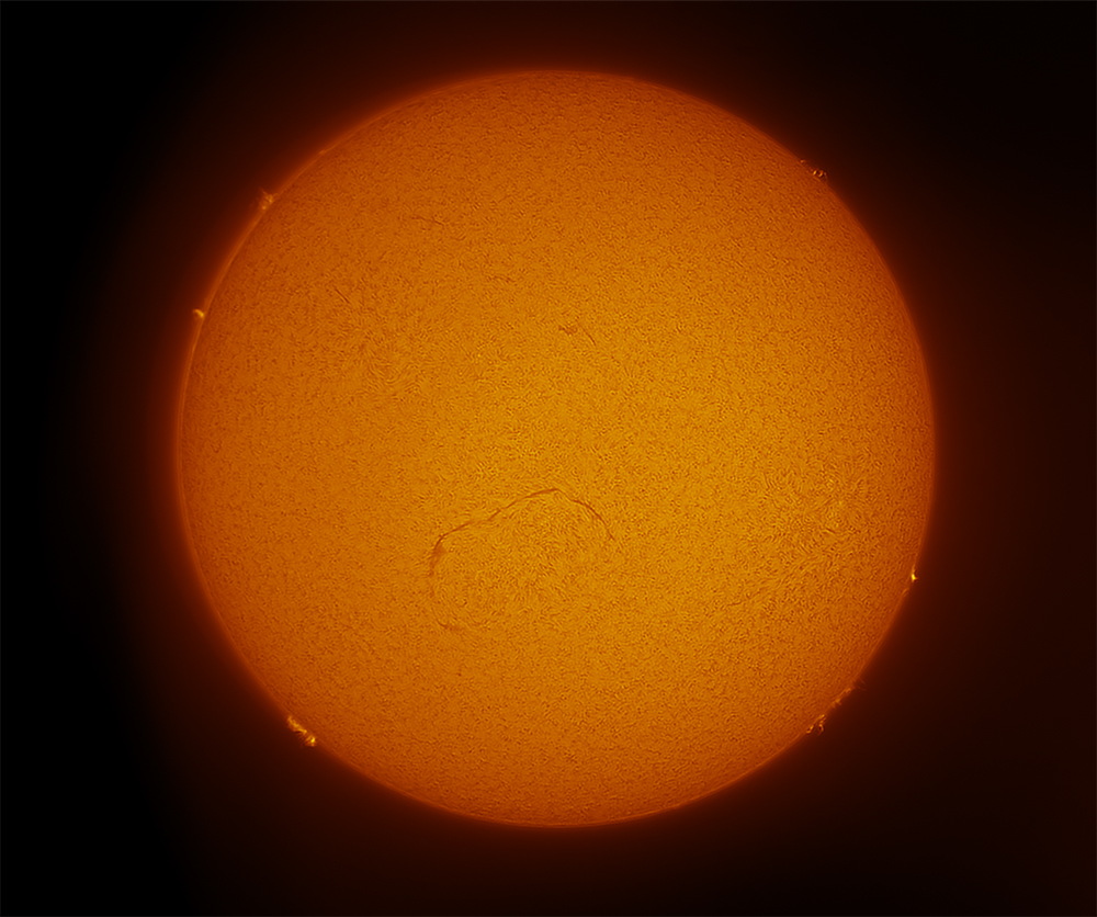 Conditions were far from perfect today - cloudy with occasional gaps, very windy and generally poor seeing. I shouldn't have bothered setting up, but I knew that there was a fabulous filament on the disk and I couldn't resist giving it a go. I'm glad I battled the elements.