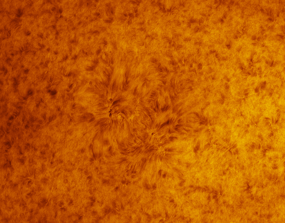 Here is an extreme close up of the active region, AR 2708. I am very happy with the detail of the surface of the Sun that I have managed to capture here. The 10" telescope combined with the high quality Daystar Hydrogen Alpha filter makes for a very efficient system.