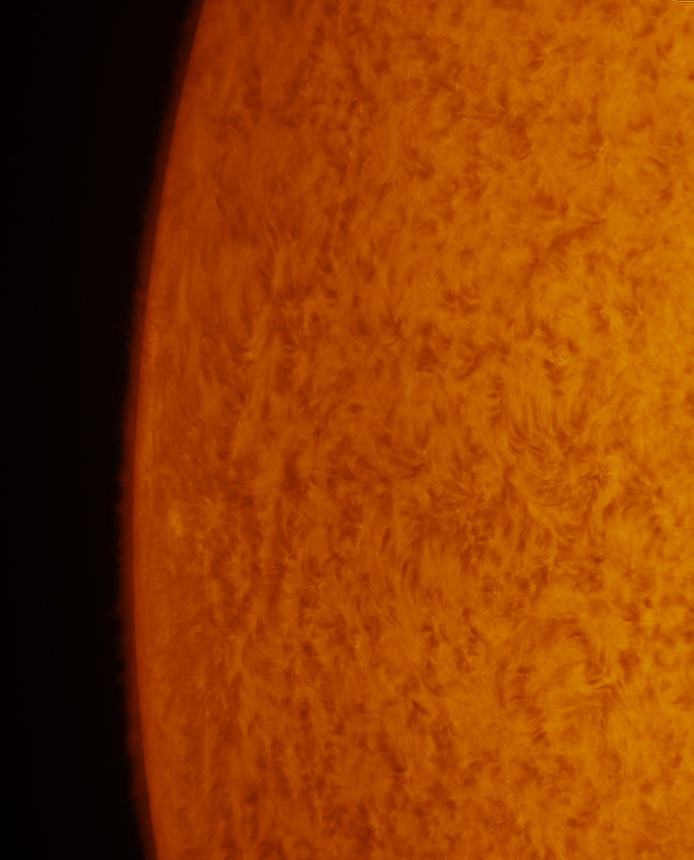 A close up of the solar surface, focusing on a potential active region area on the oncoming limb.