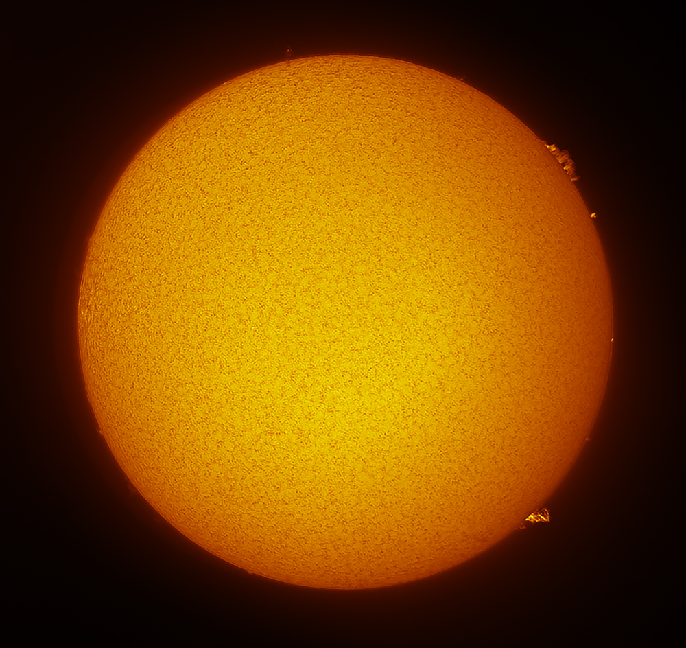 The Sun's full disk in hydrogen alpha, showing no active regions, but there are some impressive prominences.