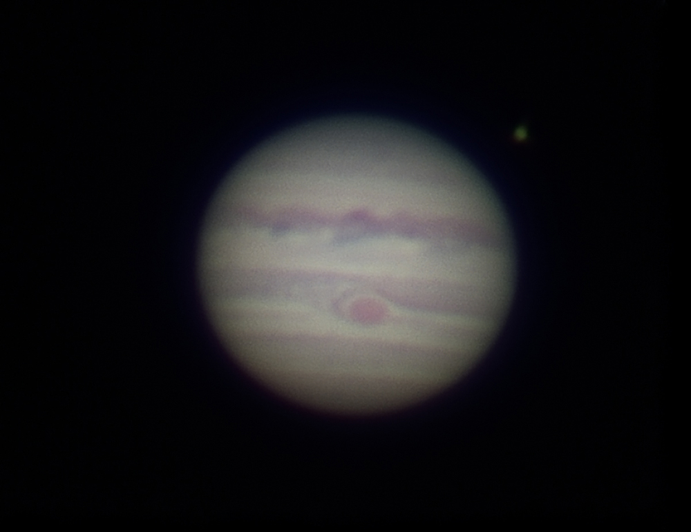 This is a pretty poor and hazy image of Jupiter, shot with a 2.5x Powermate in the optical chain. Unfortunately Jupiter is very low in the sky with too much hazy atmosphere to image through to give really good results. Conditions were not really good enough to get away with using the Powermate, but I had to at least give it a go!