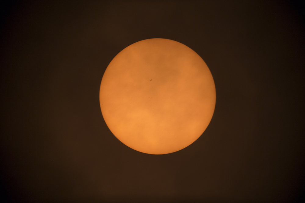 I rushed home to try and photograph the transit of Mercury which took place in May 2016. I used my 8" telescope and a white light solar filter. Mercury is the small dot just inside the solar disk at nearly the 9 o'clock position. Suddenly the scale of the Solar System takes shape. Unfortunately the sky was increasingly cloudy.